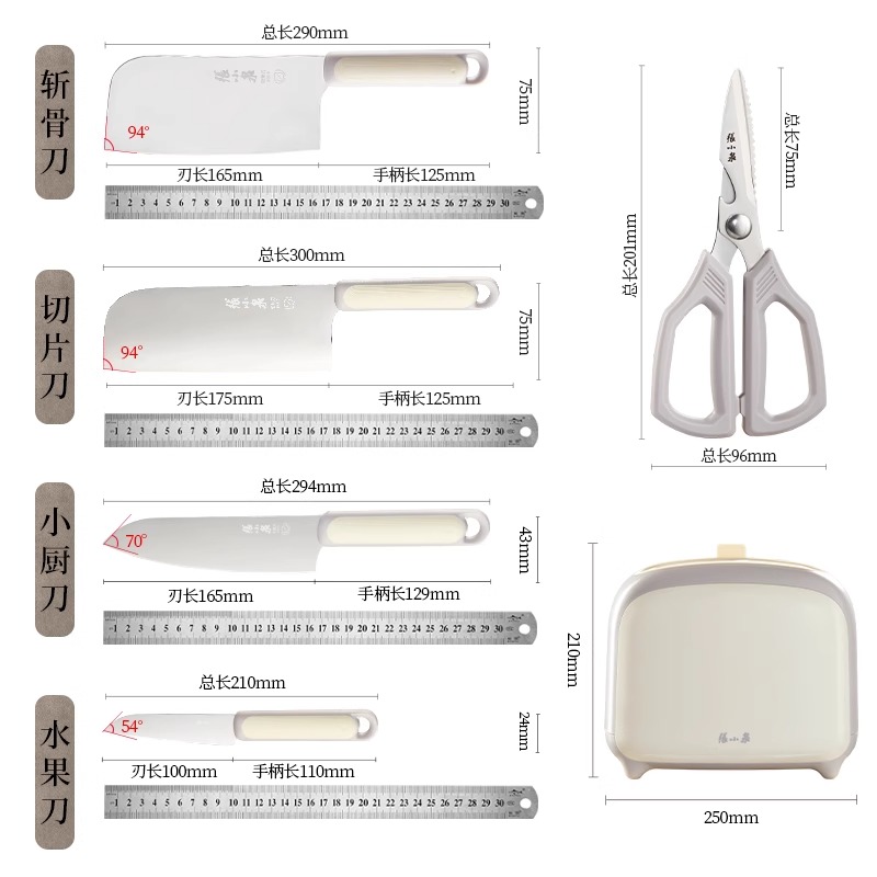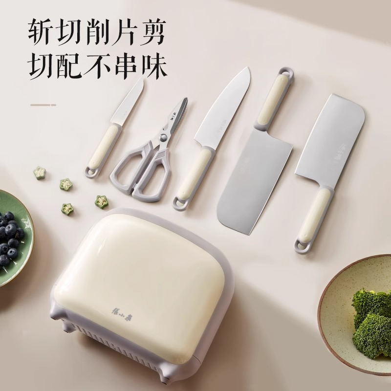 张小泉刀具套装 家用不锈钢全套厨刀厨房菜刀菜板组合可拆卸刀架
