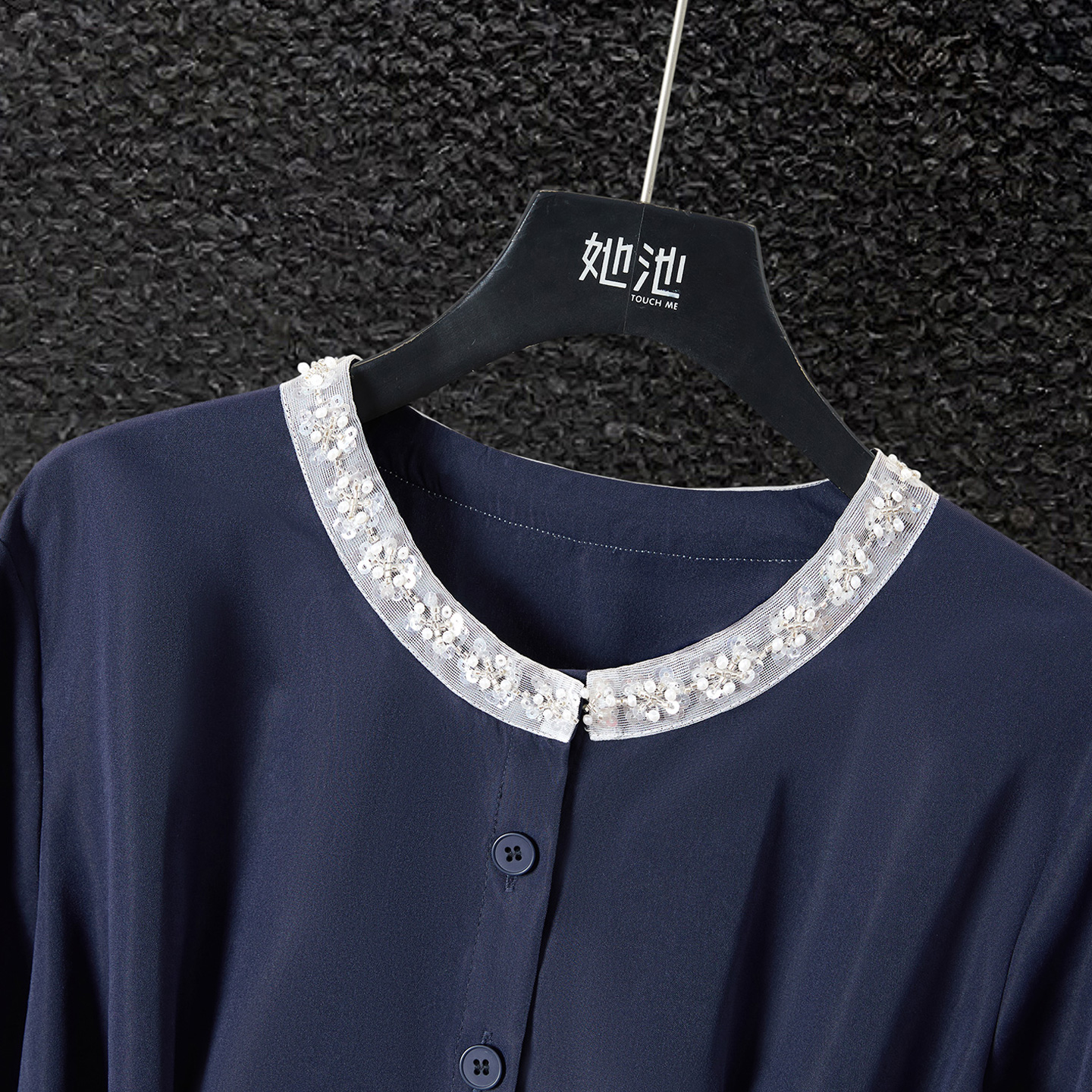 女装 新款 通勤气质收腰单排扣亮片圆领衬衣 2025秋装 她池撞色衬衫