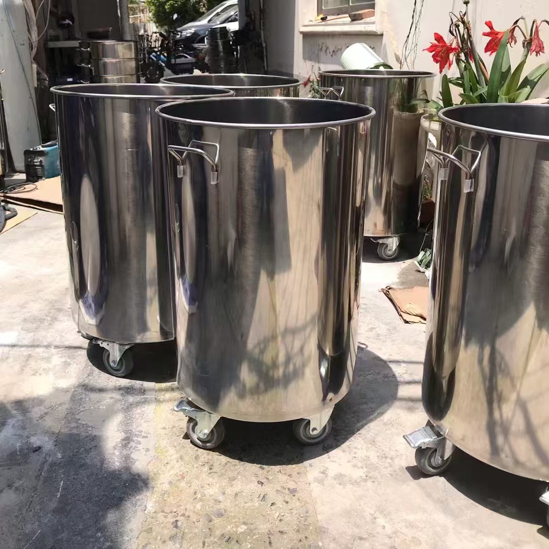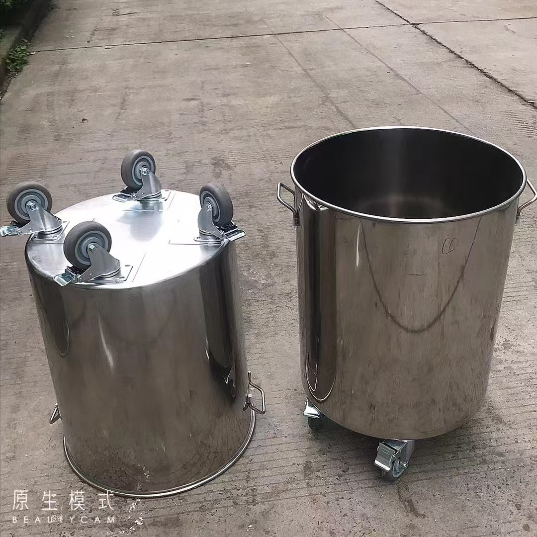 不锈钢桶周转桶移动带盖商用带脚轮大容量商用拉缸搅拌桶圆桶特厚