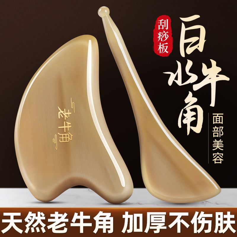 白水牛角面部刮痧板按摩刮疗片脸部专用提拉紧致美容全身神器穴位