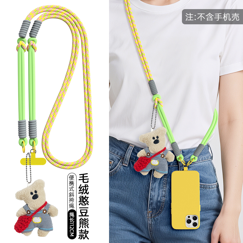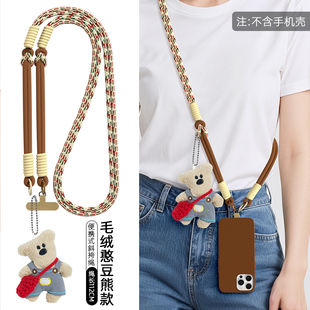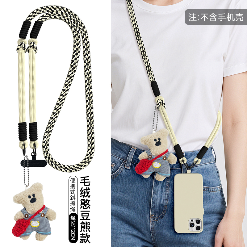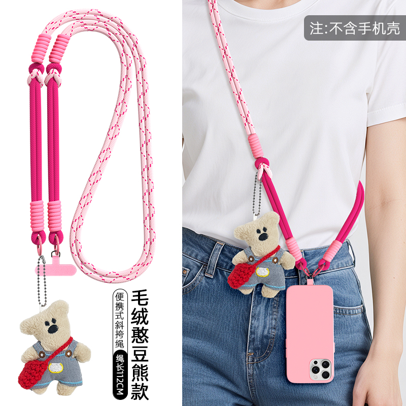 精致背带裤 毛绒小熊公仔编织挎包编制挎绳垫片可爱玩偶手机壳垫片