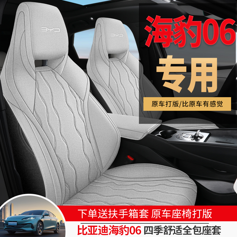 比亚迪海豹06DMI专用汽车坐垫四季 通用亚麻座套透气亚麻座椅套
