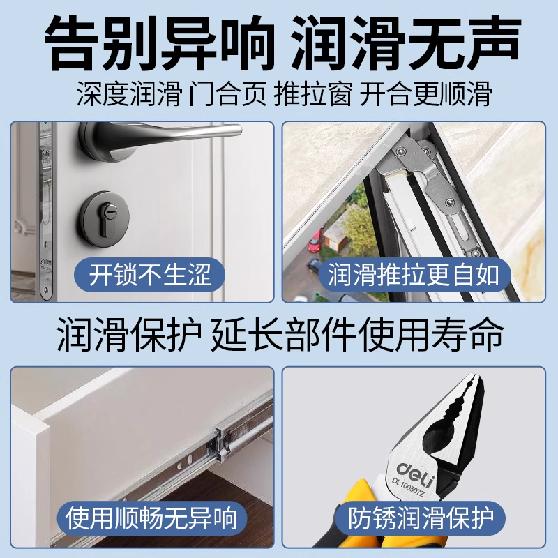 得力门响润滑油门锁合页轴家用防锈润滑剂防盗窗消除异响专用神器