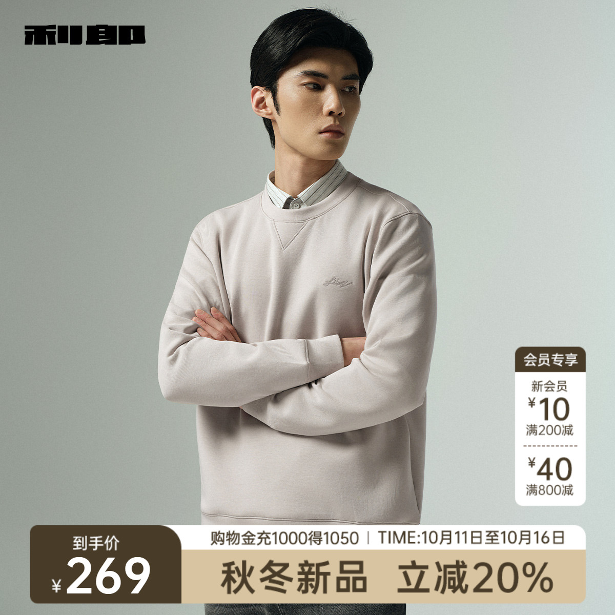 远红外发热 新款 利郎官方 休闲宽松圆领2025秋季 男装 卫衣男士