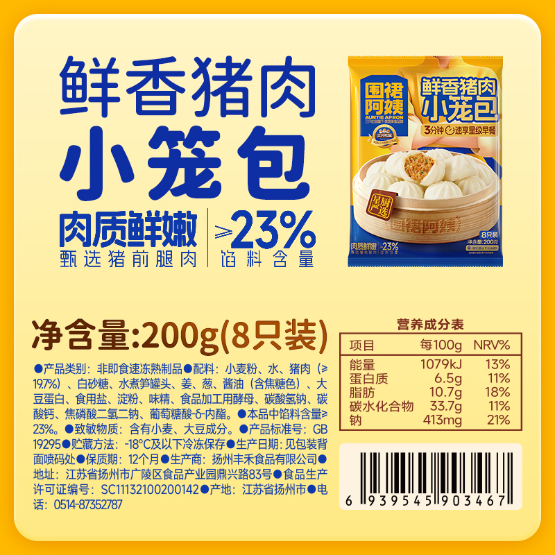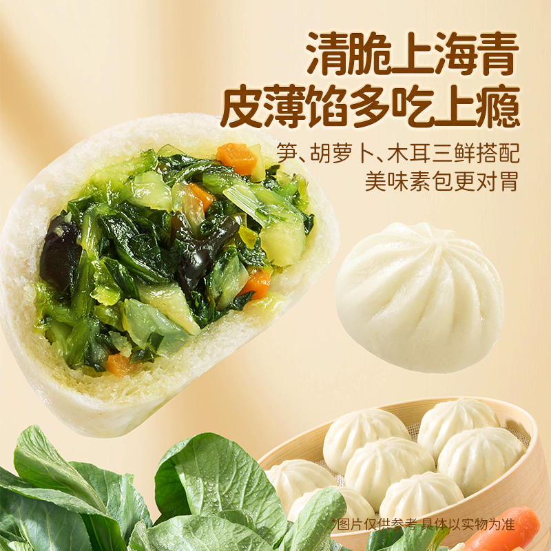 围裙阿姨鲜香猪肉三鲜青菜小笼包早餐面点半成品速食三只松鼠