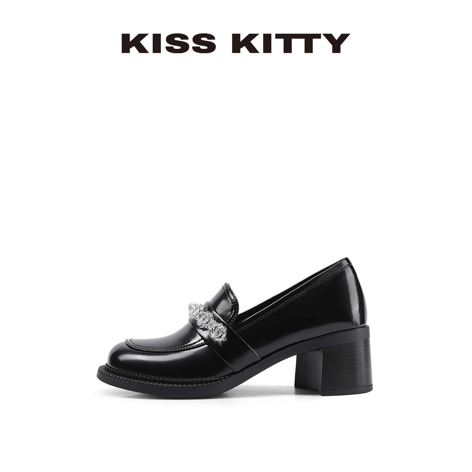 一脚蹬通勤女鞋 百搭单鞋 女2025新款 KISSKITTY复古乐福黑色小皮鞋