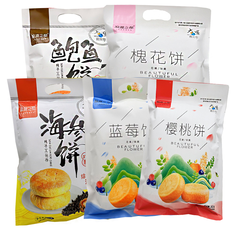 大连特产300克槐花饼鲜花樱桃蓝莓酥200克海参鲍鱼饼海鲜礼包礼品
