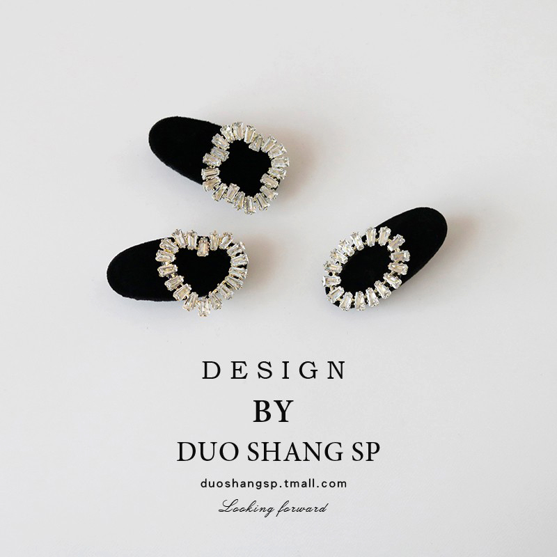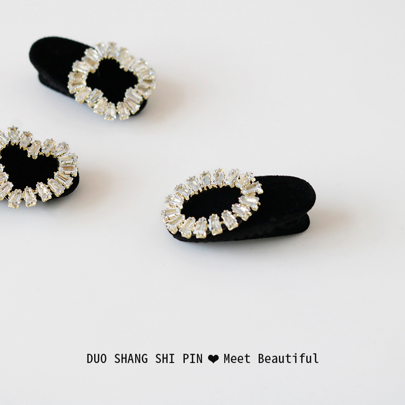 公主头闪钻小发夹女韩国前额刘海夹侧边发卡气质丝绒鸭嘴夹子头饰