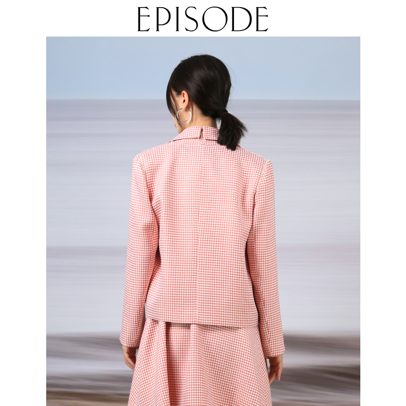 V领钉珠包边复古千鸟格纹女士休闲短外套 长袖 EPISODE春季 新品