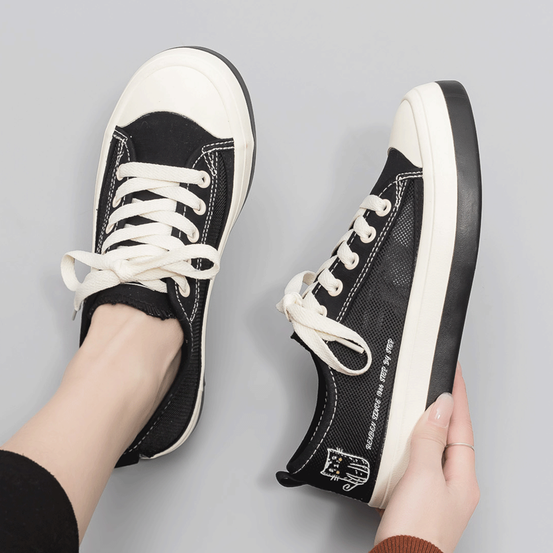 百搭学生休闲运动小众厚底板鞋 新款 子女2025年秋季 环球黑色帆布鞋