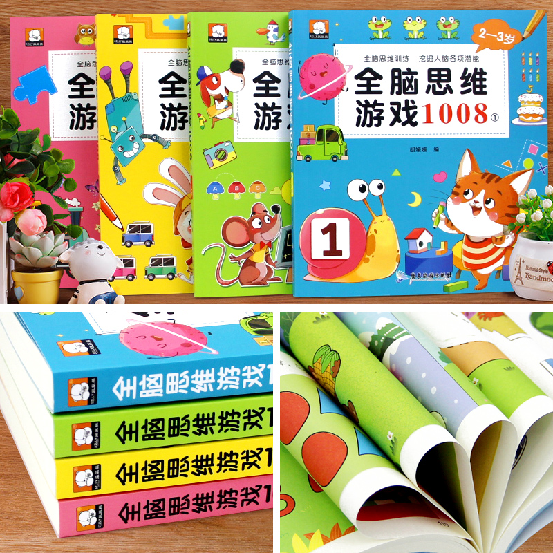 6岁儿童专注力思维逻辑训练书左右脑智力大开发幼儿启蒙早教书五六岁益智书籍找不同走迷宫书 全脑思维游戏1008全套2