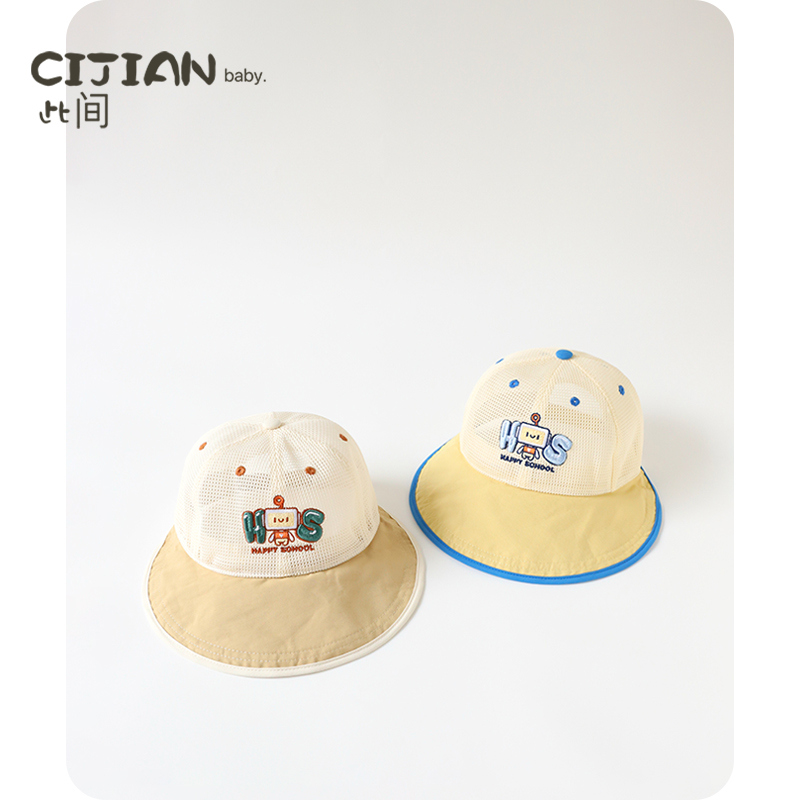儿童渔夫帽春秋薄款 幼儿园小黄帽婴儿防晒帽男女童太阳帽宝宝帽子