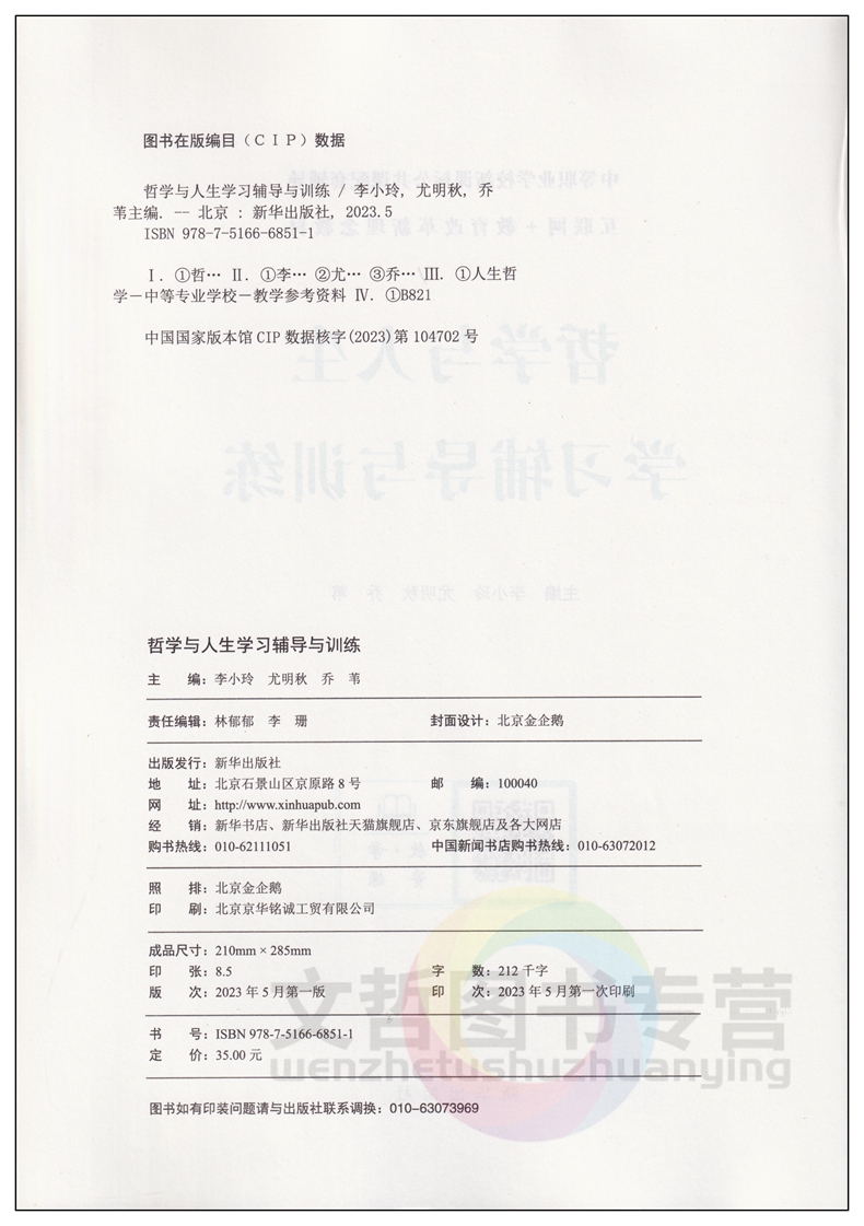 2025中职哲学与人生学习辅导与训练思想政治基础模块练习册习题集中等职业学校新教材配套同步练学生用书文旌课堂新华出版 社