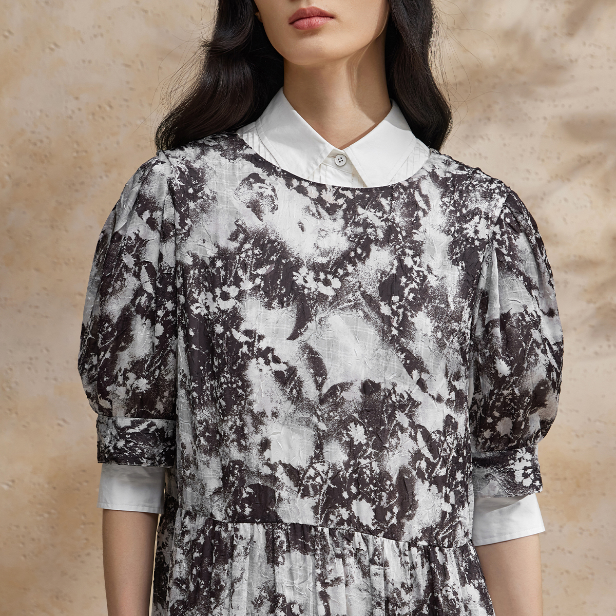 SNIDEL2025秋冬新品 印花茶歇连衣裙SWFO254139 优雅荷叶边小飞袖