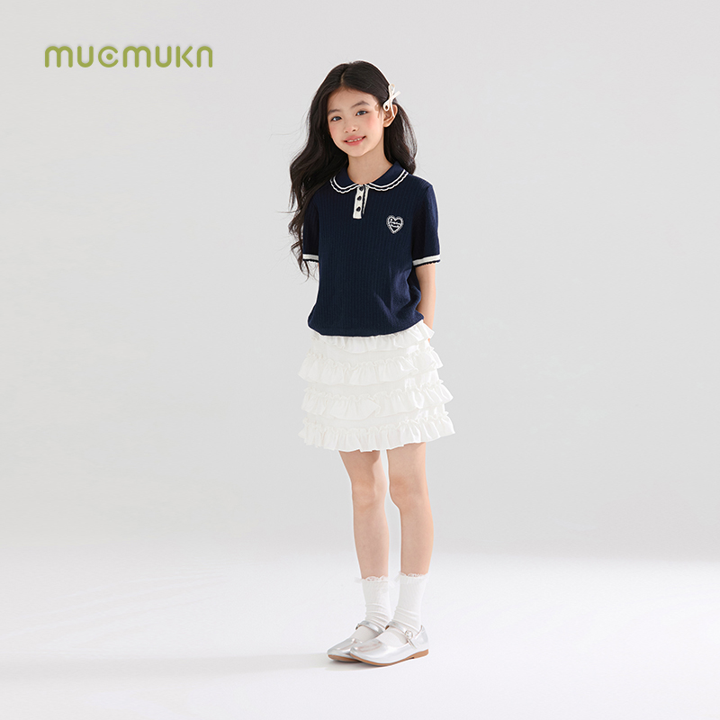 爱心绣花polo清凉透气娃娃领短袖 空调针织衫 女童 冰丝莱赛尔