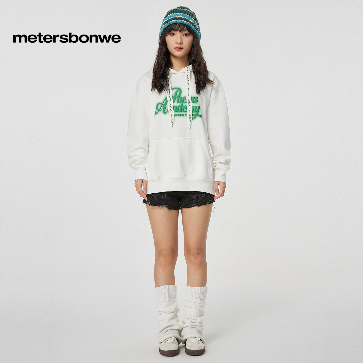 美特斯邦威卫衣女秋冬休闲宽松时尚 潮流立体印花百搭连帽针织长袖