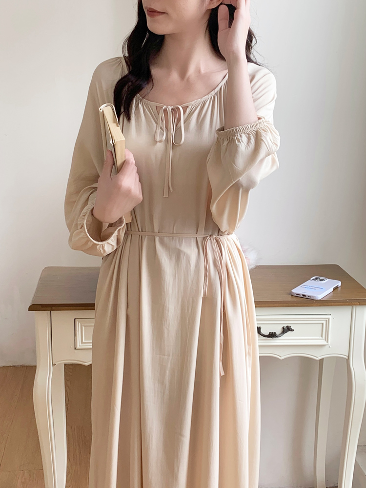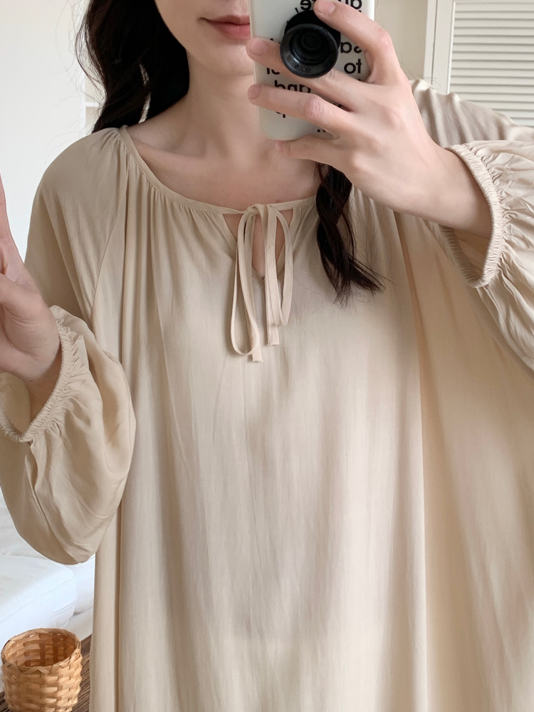 幸棉法式 睡裙女秋超仙睡衣家居服露背高级感连衣裙宽松长裙子 长袖