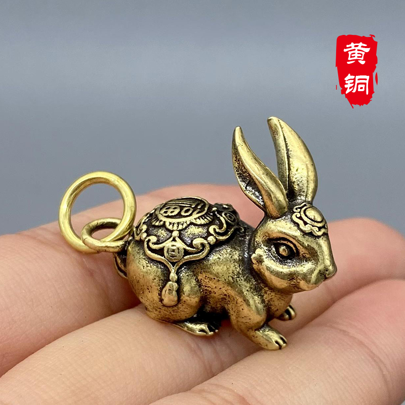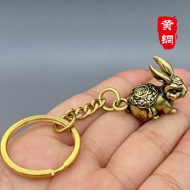黄铜钥匙扣铜手工生肖兔子创意汽车钥匙链挂件小吊坠饰品小礼品