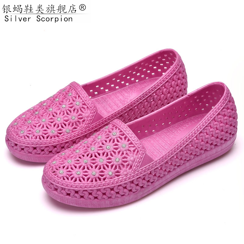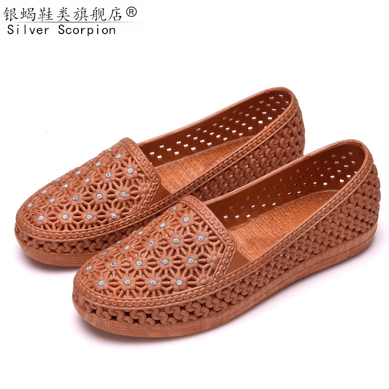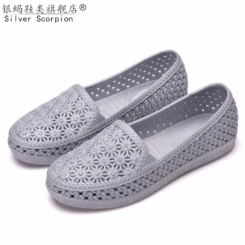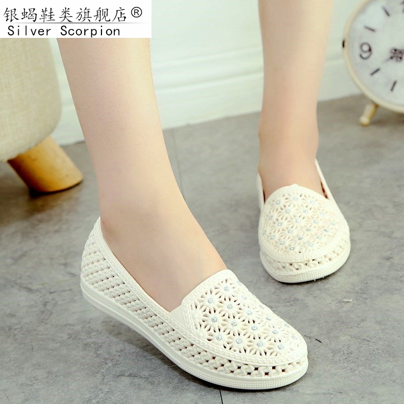 软底防滑防雨工作鞋 妈妈鞋 女平底中老年镂空女鞋 塑料奶奶凉鞋 夏季