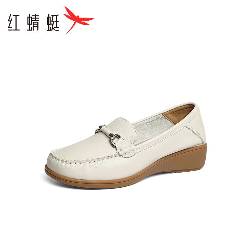 软底真皮坡跟奶奶单鞋 红蜻蜓妈妈鞋 中老年皮鞋 一脚蹬女鞋 2025新款