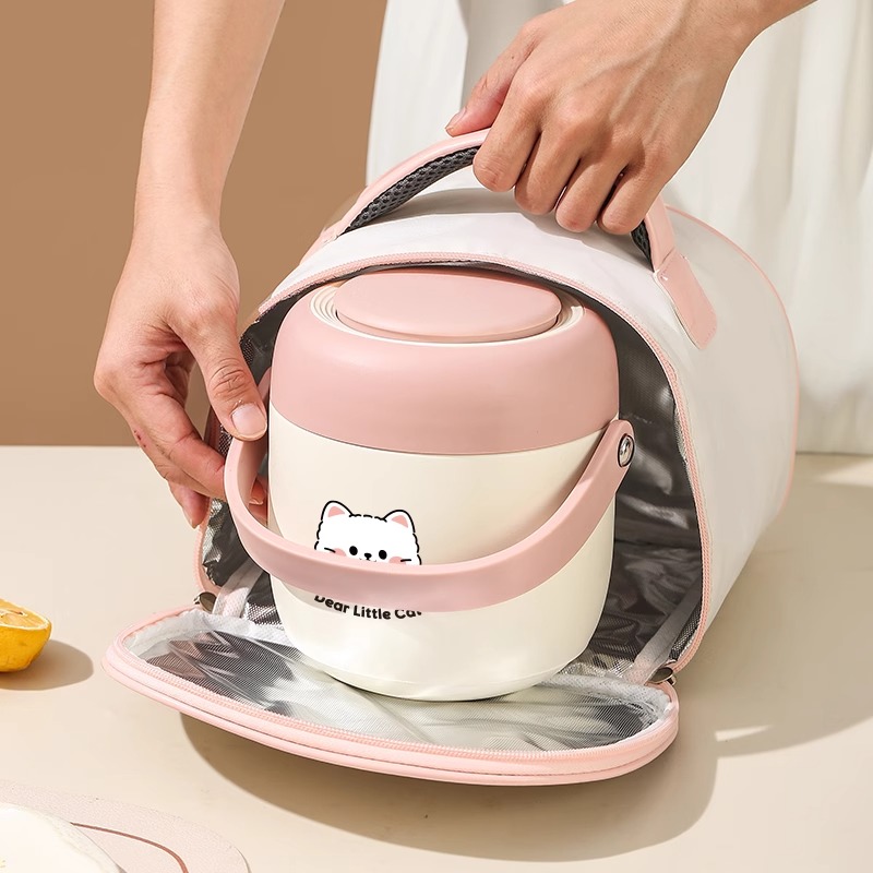 304不锈钢超长保温饭盒上班族学生便携带饭桶餐盒便当汤壶碗提锅L