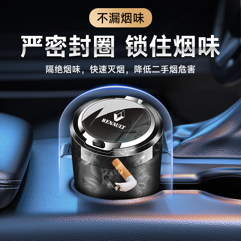适用于雷诺QM6科雷缤科雷傲科雷嘉风朗车载烟灰缸一键开盖耐高温