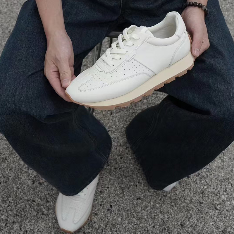 潮鞋 真牛皮休闲运动鞋 真皮男鞋 小白鞋 小众设计慢跑鞋 日系2024新款