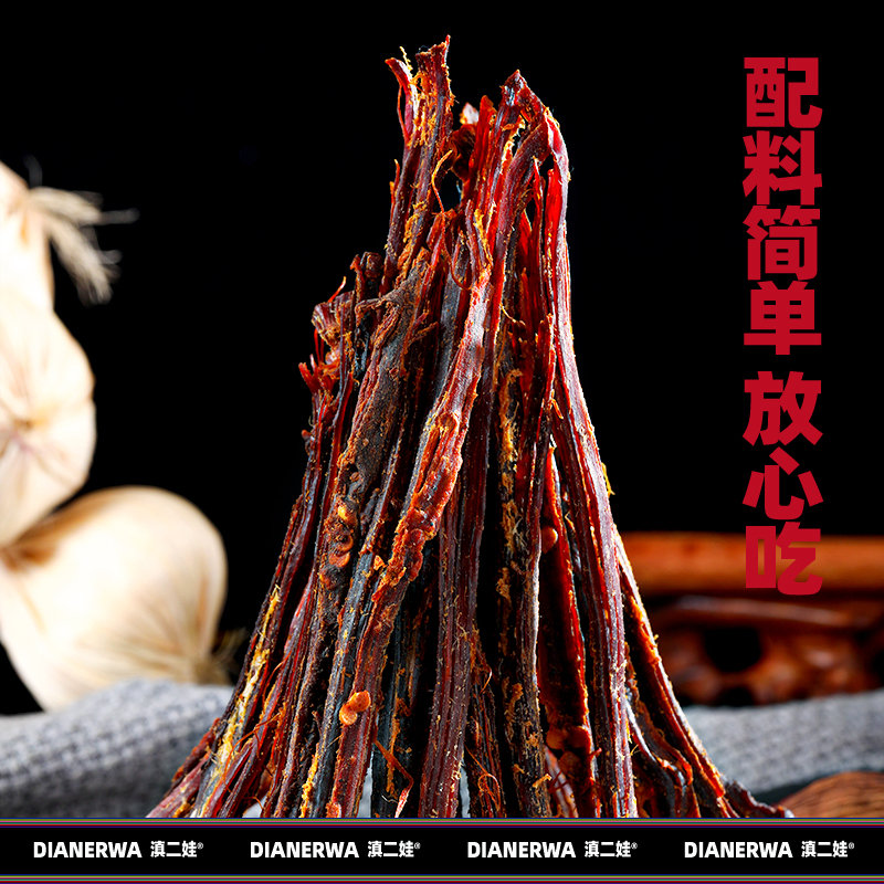 滇二娃火烧猪肉干巴香辣五香手撕猪后腿肉耐嚼肉类追剧小零食解馋