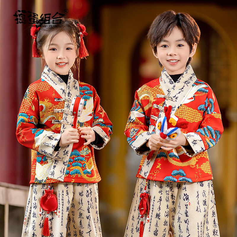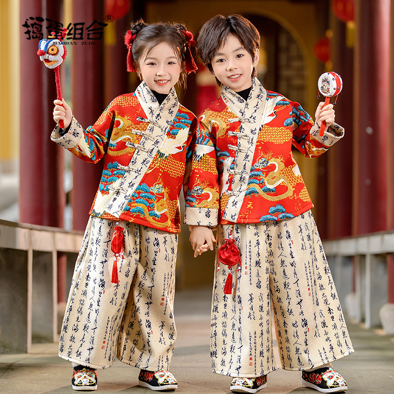 幼儿园演出服 拜年服秋冬红色套装 儿童汉服男童中国风唐装 女童中式