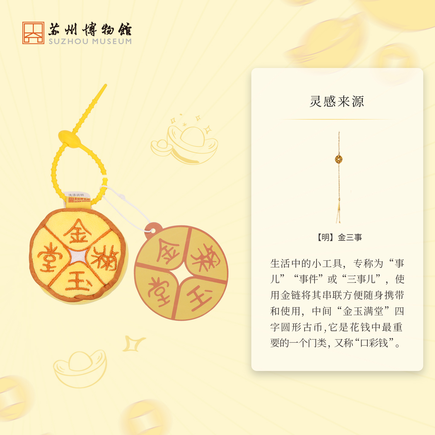 苏州博物馆 金玉满堂毛绒挂件玩偶包包挂饰毛绒钥匙扣送朋友礼物