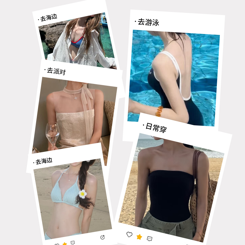 猫人透明泳衣胸贴海边泳衣比基尼用上托聚拢隐形硅胶防水防汗乳贴
