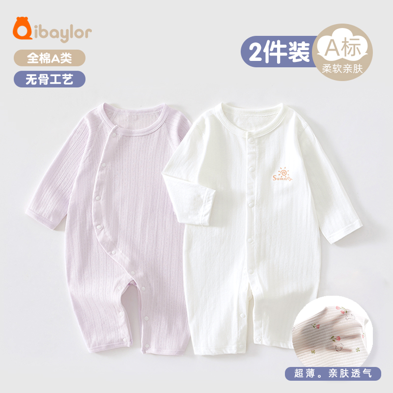 提花连体衣男女宝宝长袖 薄款 空调服新生儿打底哈衣服 婴儿夏季 2件