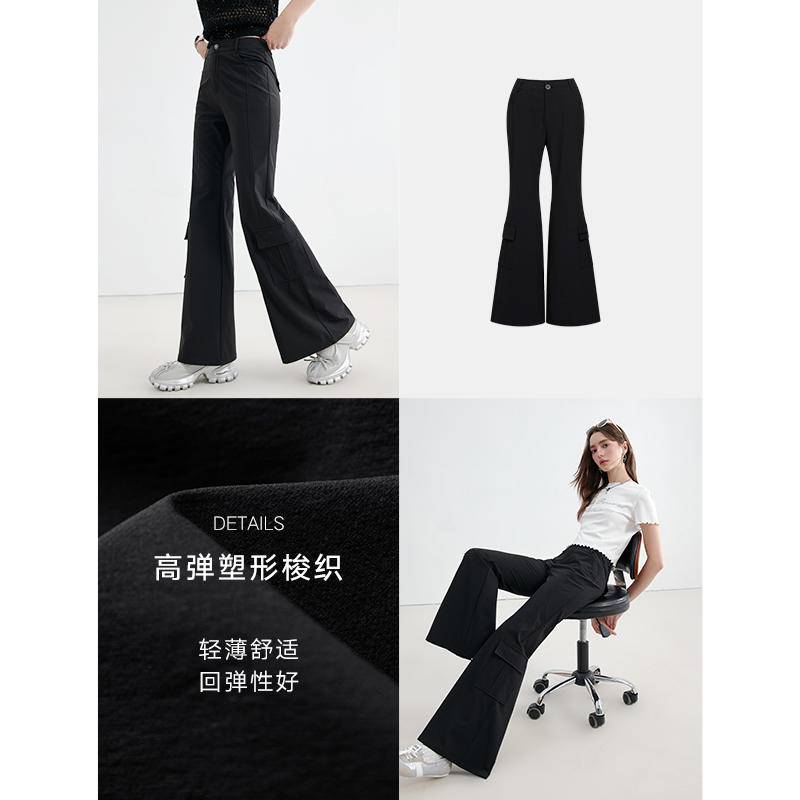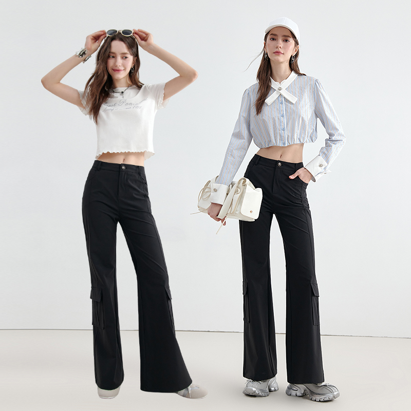女春秋新款 休闲直筒慵懒松弛感裤 高腰垂感窄版 裤 子 西装 黑色阔腿裤