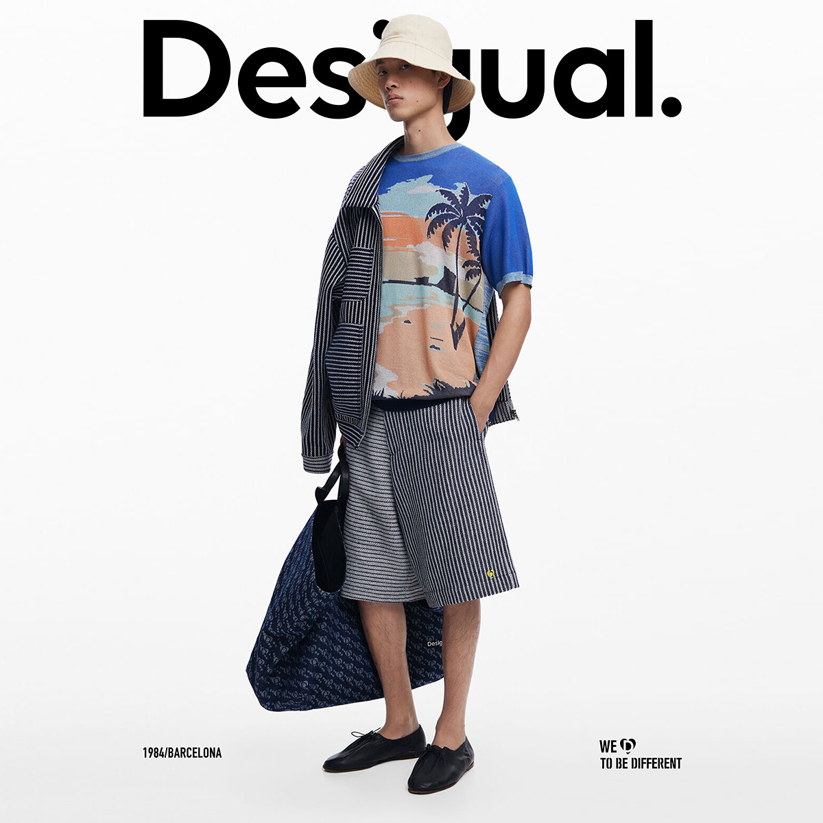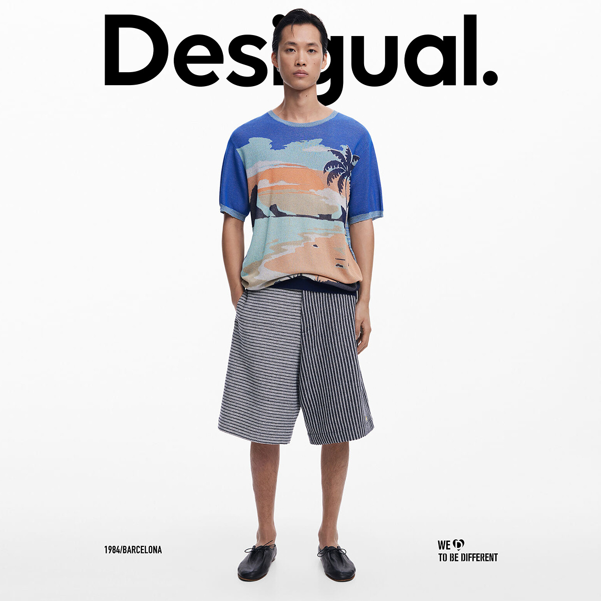 507611 肩部镂空条纹宽松上衣女装 三福毛衣2025秋季 慵懒破洞针织衫