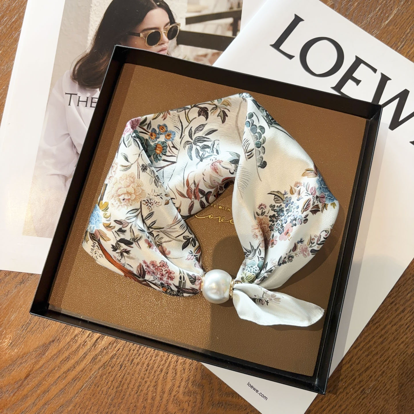 高级感珍珠项链真丝丝巾女春夏薄领巾磁吸扣100%桑蚕丝锁骨链围巾