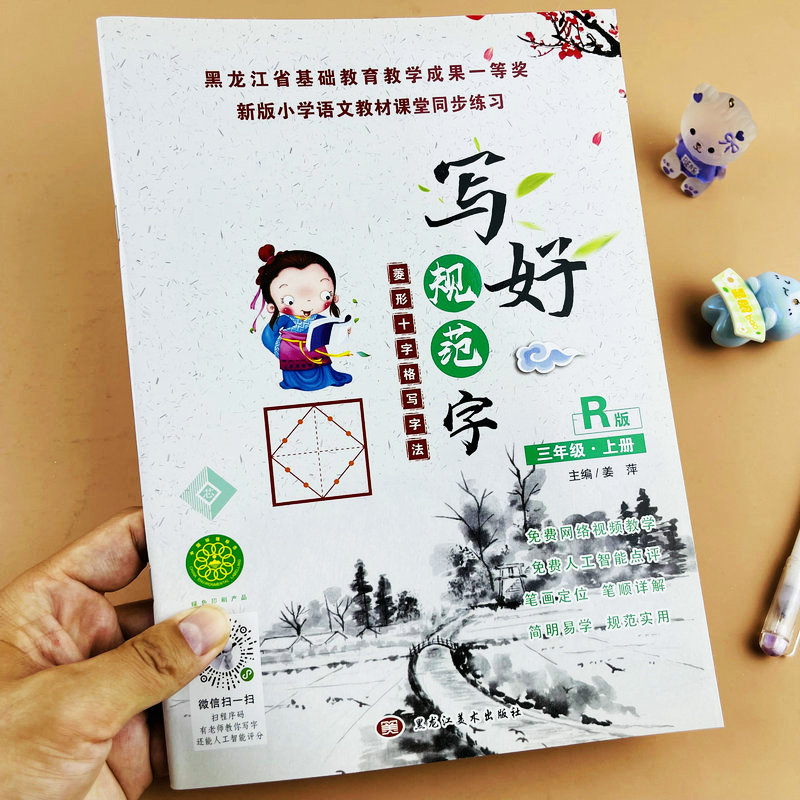 写好规范字三年级上册同步练字帖部编人教版 小学语文教材同步生字描红菱形十字格写字本汉字描红楷书硬笔书法带笔顺笔画视频教学
