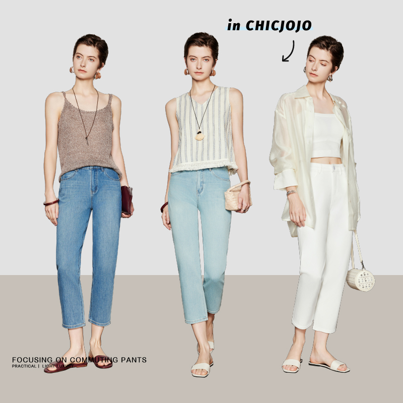 女2025新款 CHICJOJO牛仔裤 夏深蓝直筒弹力休闲九分裤 直腿法棍