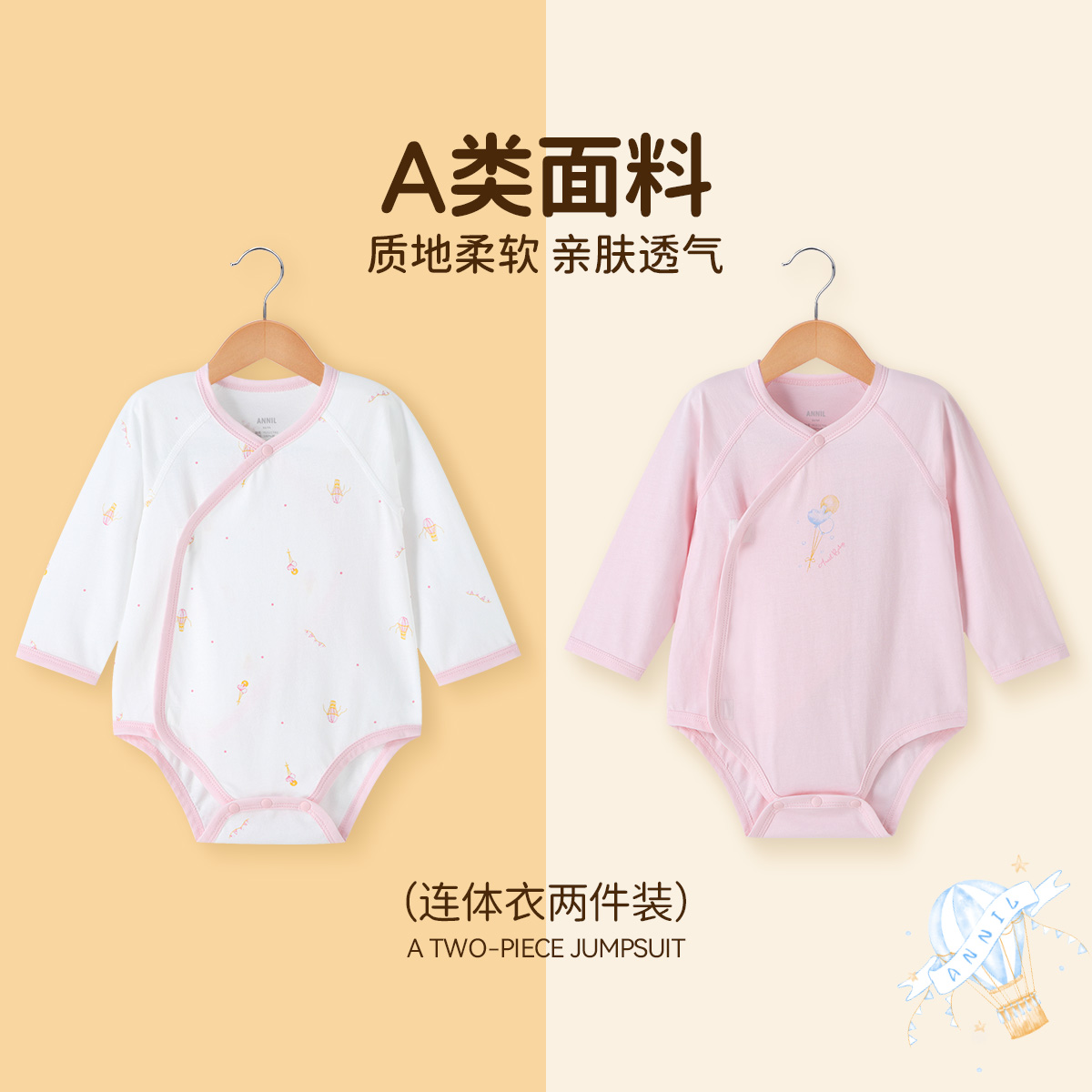 女童连体衣两件装 安奈儿童装 2025纯棉哈衣新生儿满月礼 7A抗菌