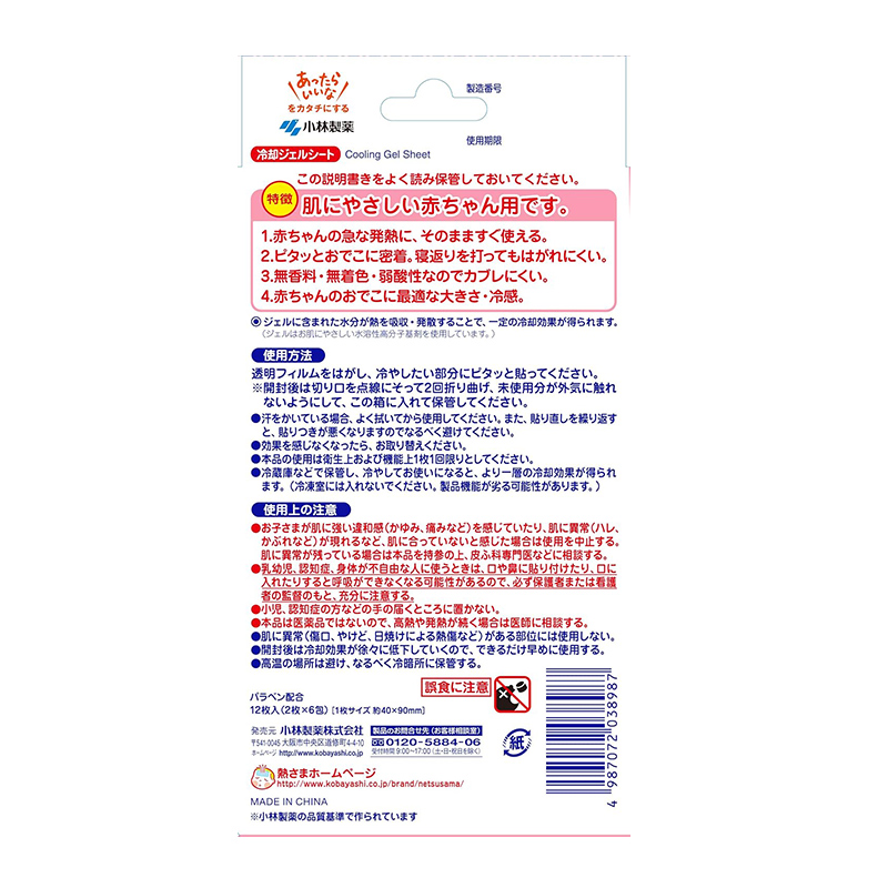 日本原装 进口小林制药婴儿退热贴宝宝冰凉退烧冰宝贴物理降温12片