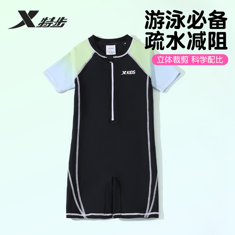 特步儿童泳衣男孩2025新款 分体平角防晒速干中大童专业游泳衣男孩