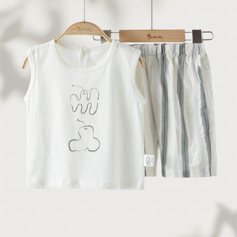 套装 五分裤 薄款 背心条纹短裤 两件套小男孩 卡通男宝宝无袖 婴儿夏装
