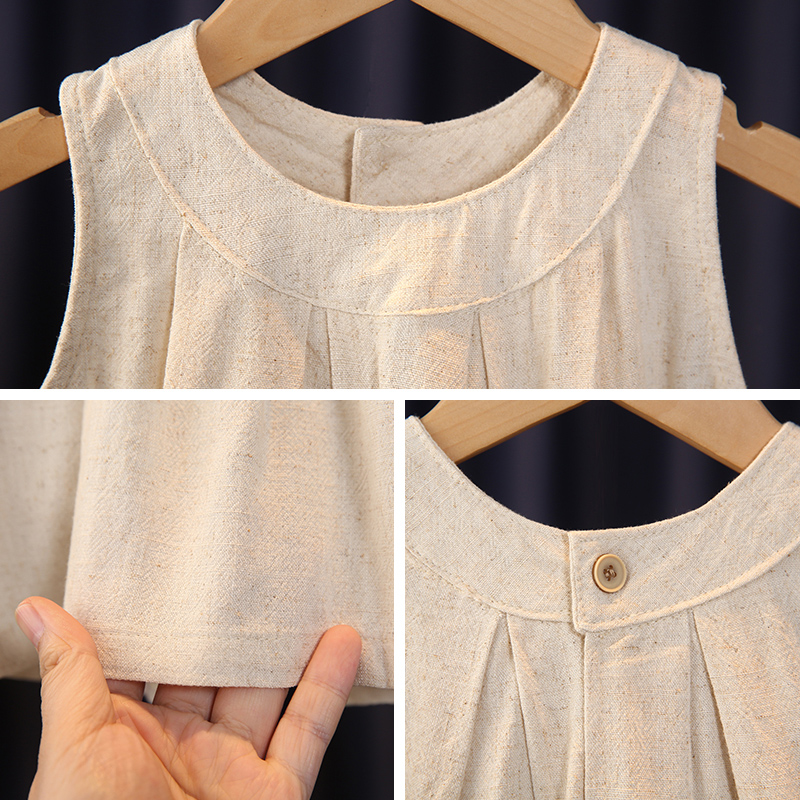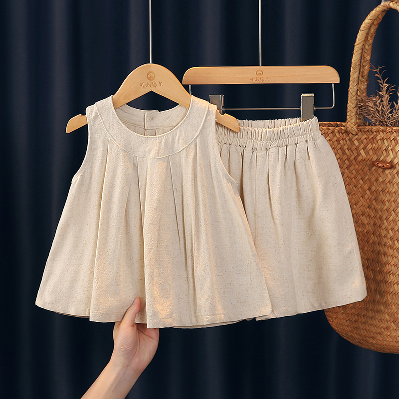 女童夏套装 小女孩洋气时髦儿童宽松休闲宝宝纯棉麻背心两件套 新款