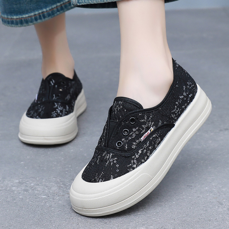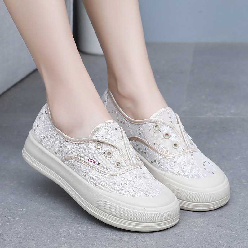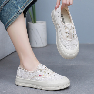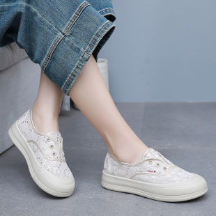 女2025夏季 懒人鞋 新款 厚底休闲板鞋 一脚蹬 透气网鞋 网面蕾丝渔夫鞋