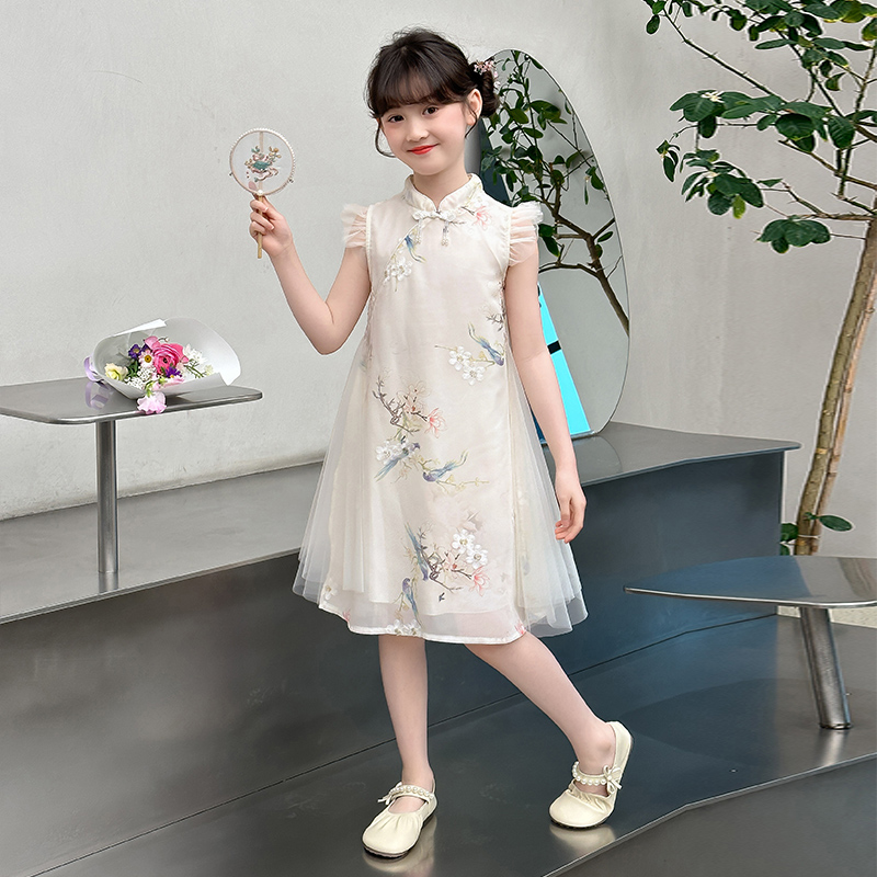 洋气儿童高端国风公主裙高级感 女童连衣裙2025新款 新中式 旗袍夏装