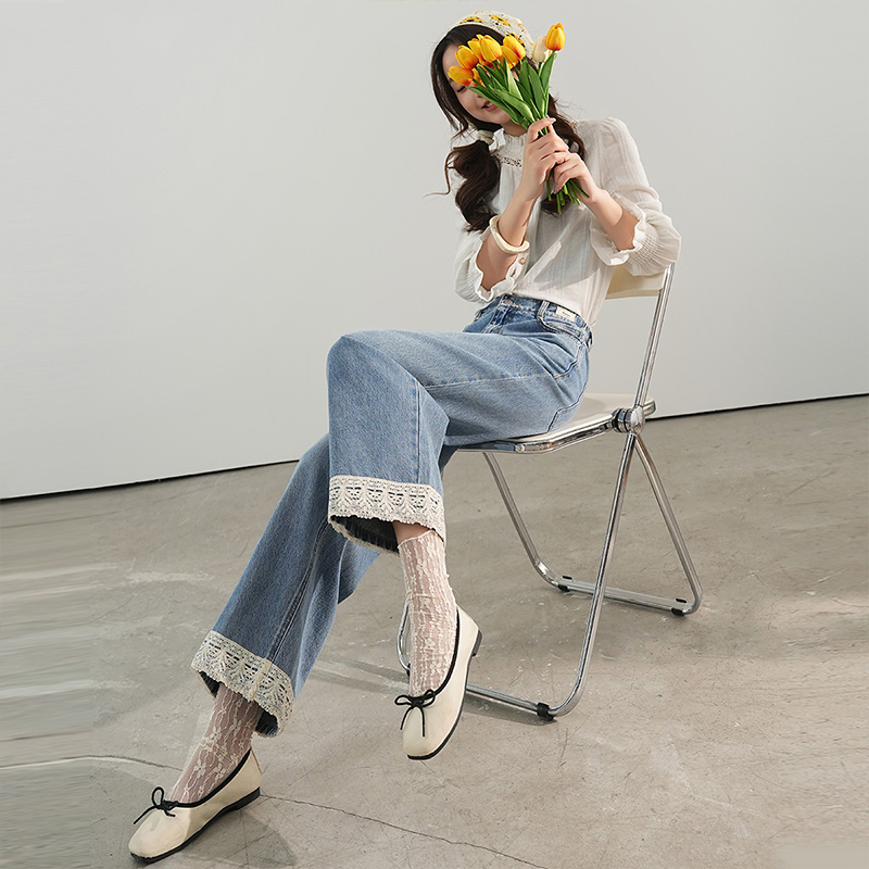 型好看阔腿牛仔裤 子女士直筒裤 女2025新款 高腰宽松弛感裤 春秋季 版