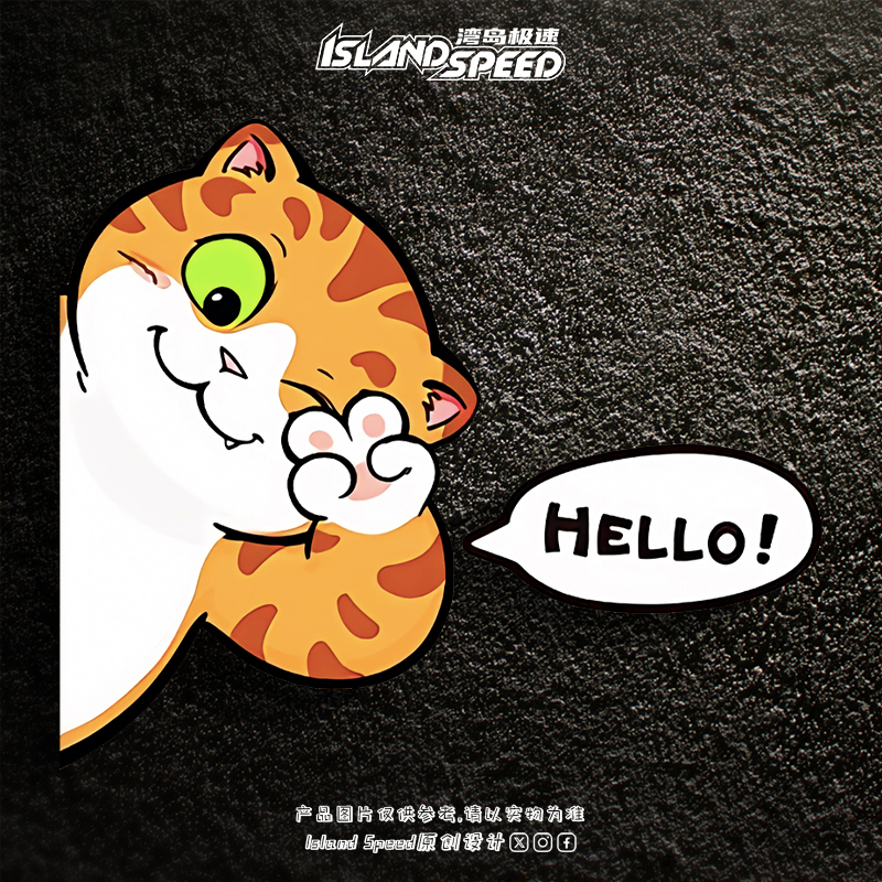 招吉猫可爱探头打招呼汽车贴纸创意卡通装 饰防水车窗边贴画