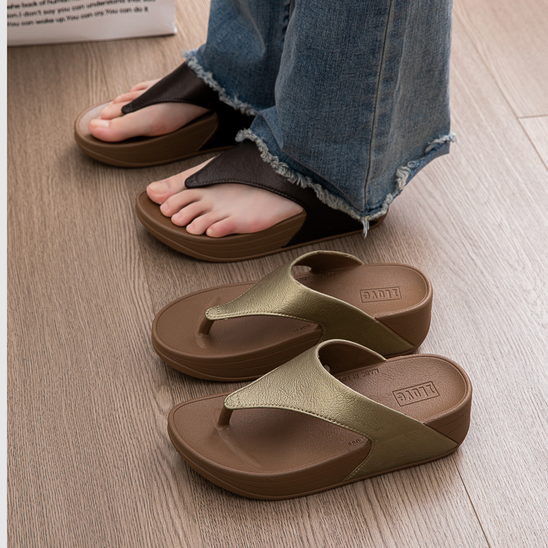 人字拖女夏外穿简约厚底踩屎感ins风海边沙滩度假夹脚拖鞋 坡跟