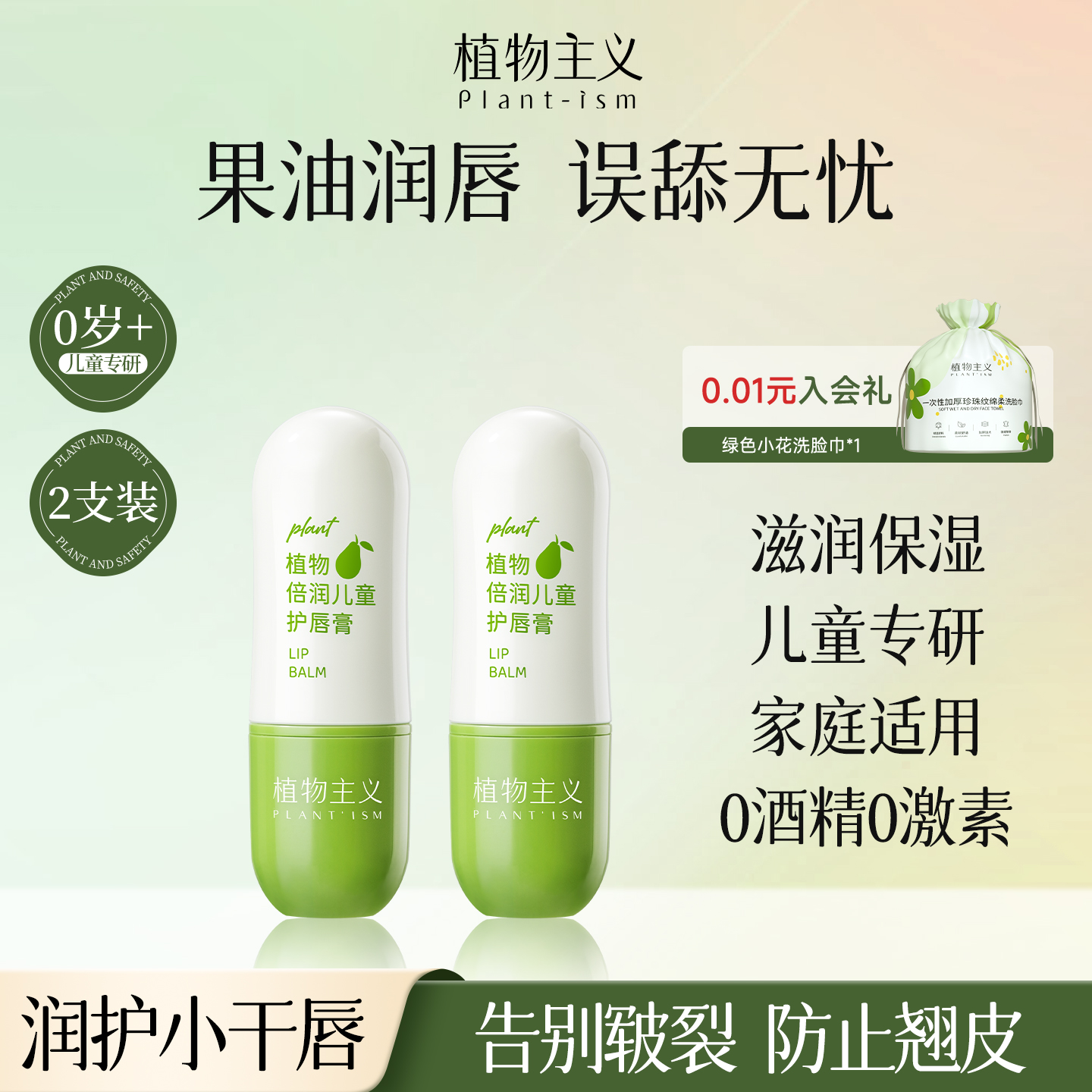 官方正品 植物主义儿童润护唇膏男孩小女孩专用宝宝婴儿秋冬季 保湿