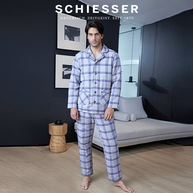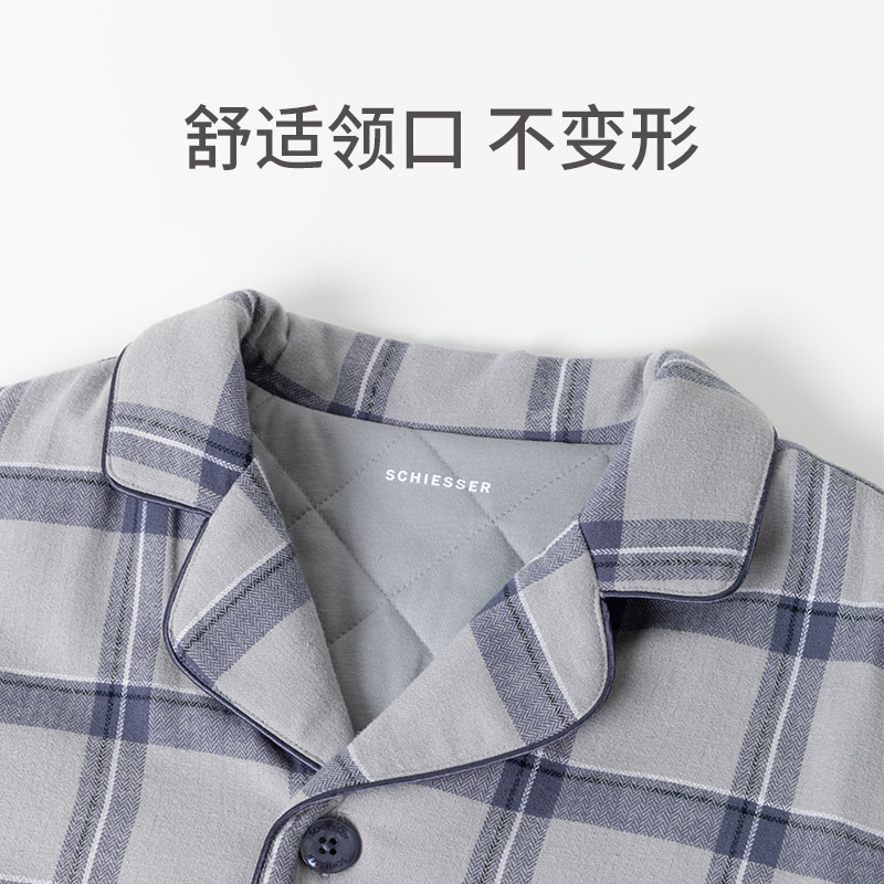 SCHIESSER舒雅奥莱男士 梳织绗棉三层布夹棉翻领睡衣家居服套装
