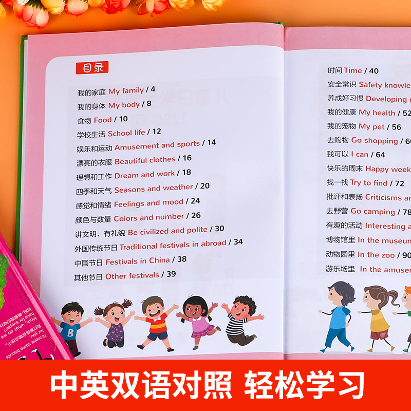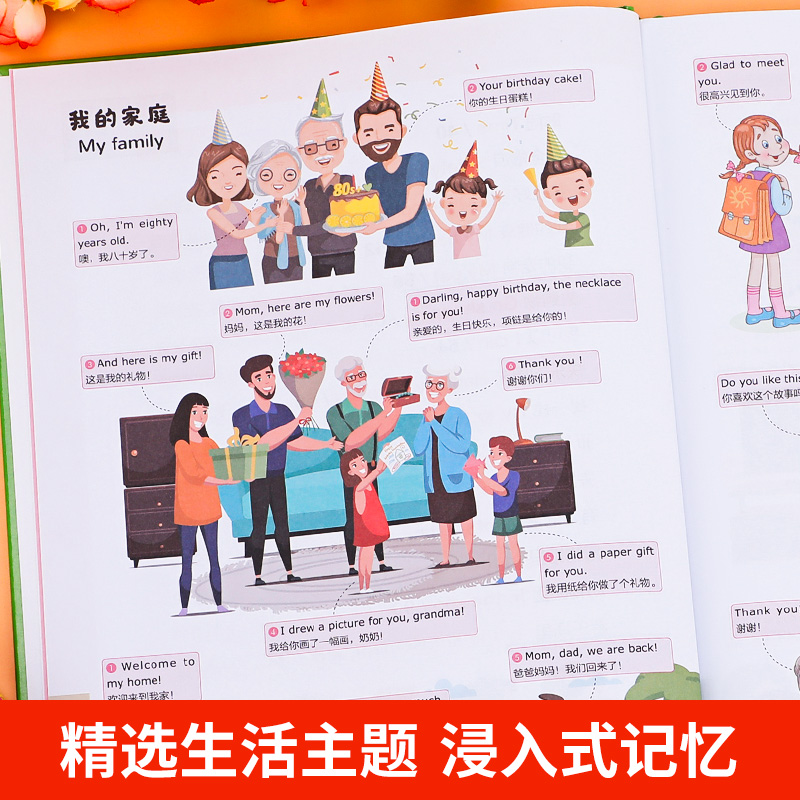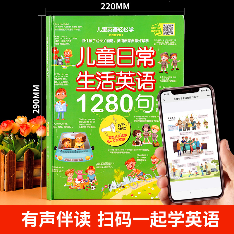 儿童日常生活英语1280句情景口语对话英文单词绘本幼儿分级阅读自然拼读教材小学生二三四年级英语启蒙入门有声读物 大开本 精装